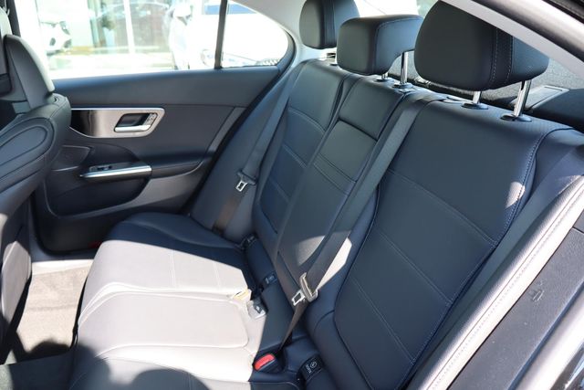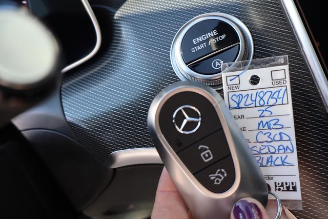 2025 Mercedes-Benz C-Class C 300 Black RWD 9-Speed Automatic 2.0L I4 Turbocharged 11.9" Center Touchscreen Display, 18" 5-Spoke Wheels, 4-Wheel Disc Brakes, 5 Speakers, ABS brakes, Air Conditioning, Alloy wheels, AM/FM radio: SiriusXM, Anti-whiplash front head restraints, Apple CarPlay®/Android Auto®, Auto High-beam Headlights, Auto tilt-away steering wheel, Auto-dimming door mirrors, Auto-dimming Rear-View mirror, Automatic temperature control, Brake assist, Bumpers: body-color, Child-Seat-Sensing Airbag, Compass, Delay-off headlights, Driver door bin, Driver vanity mirror, Dual front impact airbags, Dual front side impact airbags, Electronic Stability Control, Emergency communication system: Mercedes-Benz Emergency Call Service, Exterior Parking Camera Rear, Four wheel independent suspension, Front anti-roll bar, Front Bucket Seats, Front Center Armrest, Front dual zone A/C, Front reading lights, Fully automatic headlights, Garage door transmitter: HomeLink, Genuine wood dashboard insert, Head restraints memory, Heated door mirrors, Heated front seats, Illuminated entry, Knee airbag, Leather steering wheel, Low tire pressure warning, Lumbar Support, MB-Tex Upholstery, Memory seat, Occupant sensing airbag, Outside temperature display, Overhead airbag, Overhead console, Panic alarm, Passenger door bin, Passenger vanity mirror, Power adjustable front head restraints, Power door mirrors, Power driver seat, Power Heated Front Seats with Memory, Power moonroof, Power passenger seat, Power steering, Power windows, Premium audio system: MBUX, Radio data system, Radio: FrontBass 5-Speaker Audio System, Rain sensing wipers, Rear anti-roll bar, Rear fog lights, Rear reading lights, Rear seat center armrest, Rear window defroster, Remote keyless entry, Security system, SiriusXM Satellite Radio, Speed control, Speed-sensing steering, Split folding rear seat, Steering wheel memory, Steering wheel mounted audio controls, Tachometer, Telescoping steering wheel, Tilt steering wheel, Traction control, Trip computer, Turn signal indicator mirrors, Variably intermittent wipers, Weather band radio.
