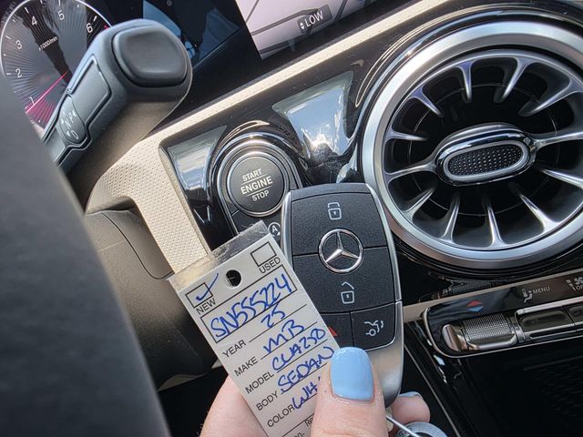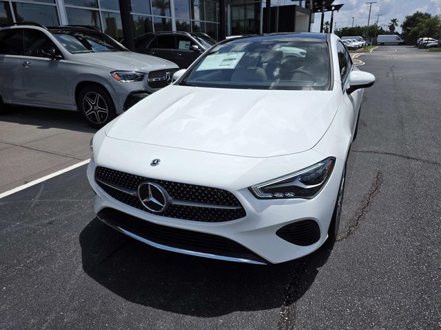 2025 Mercedes-Benz CLA 250 White FWD 8 Speed Dual Clutch 2.0L I4 Turbocharged 18" Multi-Spoke Alloy Wheels, 4-Wheel Disc Brakes, 8 Speakers, 8-Way Power Adjustable Driver and Passenger Seats, ABS brakes, Air Conditioning, Alloy wheels, AM/FM radio: SiriusXM, Apple CarPlay(R)/Android Auto(R), Auto High-beam Headlights, Auto-dimming Rear-View mirror, Automatic temperature control, Brake assist, Brushed Aluminum Interior Trim, Bumpers: body-color, Child-Seat-Sensing Airbag, Delay-off headlights, Driver door bin, Driver vanity mirror, Dual front impact airbags, Dual front side impact airbags, Electronic Stability Control, Emergency communication system: eCall Emergency System, Exterior Parking Camera Rear, Four wheel independent suspension, Front anti-roll bar, Front Bucket Seats, Front Center Armrest, Front dual zone A/C, Front reading lights, Fully automatic headlights, Garage door transmitter, Heated door mirrors, Illuminated entry, Knee airbag, Leather steering wheel, Low tire pressure warning, MB-Tex Upholstery, Memory seat, Occupant sensing airbag, Outside temperature display, Overhead airbag, Overhead console, Panic alarm, Passenger door bin, Passenger vanity mirror, Power door mirrors, Power driver seat, Power moonroof, Power passenger seat, Power steering, Power windows, Radio data system, Radio: MBUX Multimedia System, Rain sensing wipers, Rear anti-roll bar, Rear fog lights, Rear reading lights, Rear seat center armrest, Rear window defroster, Remote keyless entry, Security system, SiriusXM Satellite Radio, Speed control, Speed-sensing steering, Split folding rear seat, Steering wheel mounted audio controls, Tachometer, Telescoping steering wheel, Tilt steering wheel, Traction control, Trip computer, Turn signal indicator mirrors, Variably intermittent wipers.