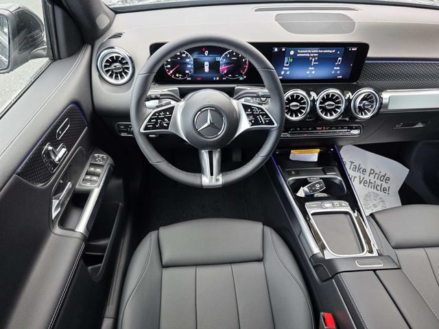 2025 Mercedes-Benz GLB 250 4MATIC(R) Black 4MATIC(R) 4MATIC(R) 8 Speed Dual Clutch 2.0L I4 Turbocharged 4-Wheel Disc Brakes, 8 Speakers, ABS brakes, Air Conditioning, Alloy wheels, AM/FM radio: SiriusXM, Apple CarPlay(R)/Android Auto(R), Auto High-beam Headlights, Auto-dimming door mirrors, Automatic temperature control, Brake assist, Bumpers: body-color, Child-Seat-Sensing Airbag, Delay-off headlights, Driver door bin, Driver vanity mirror, Dual front impact airbags, Dual front side impact airbags, Electronic Stability Control, Emergency communication system: Mercedes-Benz Emergency Call Service, Exterior Parking Camera Rear, Four wheel independent suspension, Front anti-roll bar, Front Bucket Seats, Front Center Armrest, Front Comfort Seats, Front dual zone A/C, Front fog lights, Front reading lights, Fully automatic headlights, Garage door transmitter, Heated door mirrors, Heated front seats, Heated Seats, Illuminated entry, Knee airbag, Low tire pressure warning, MB-Tex Upholstery, Memory seat, Occupant sensing airbag, Outside temperature display, Overhead airbag, Overhead console, Panic alarm, Passenger door bin, Passenger vanity mirror, Power door mirrors, Power driver seat, Power Liftgate, Power passenger seat, Power steering, Power windows, Premium audio system: MBUX, Radio data system, Radio: Mercedes-Benz User Experience (MBUX), Rain sensing wipers, Rear anti-roll bar, Rear fog lights, Rear reading lights, Rear window defroster, Rear window wiper, Remote keyless entry, Security system, SiriusXM Satellite Radio, Speed control, Speed-sensing steering, Split folding rear seat, Spoiler, Steering wheel mounted audio controls, Tachometer, Telescoping steering wheel, Tilt steering wheel, Traction control, Trip computer, Turn signal indicator mirrors, Variably intermittent wipers, Wheels: 18" Twin 5-Spoke, Wireless Charging.