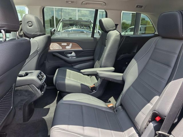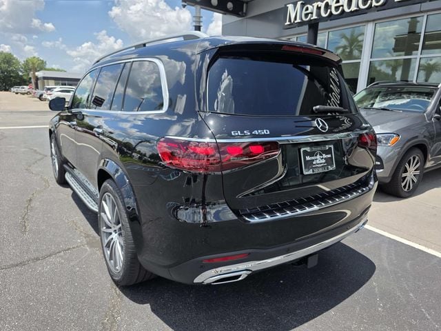 2025 Mercedes-Benz GLS 450 4MATIC(R) Black 4MATIC(R) 4MATIC(R) 9-Speed Automatic 3.0L I6 13 Speakers, 3rd row seats: split-bench, 4-Wheel Disc Brakes, 7-Seat Configuration, ABS brakes, Adaptive suspension, Air Conditioning, Alloy wheels, AM/FM radio: SiriusXM, Apple CarPlay(R)/Android Auto(R), Auto High-beam Headlights, Auto tilt-away steering wheel, Auto-dimming door mirrors, Auto-dimming Rear-View mirror, Auto-leveling suspension, Automatic temperature control, Brake assist, Bumpers: body-color, Child-Seat-Sensing Airbag, Compass, Delay-off headlights, Driver door bin, Driver vanity mirror, Dual front impact airbags, Dual front side impact airbags, Electronic Stability Control, Emergency communication system: eCall Emergency System, Exterior Parking Camera Rear, Four wheel independent suspension, Front anti-roll bar, Front Bucket Seats, Front Center Armrest w/Storage, Front dual zone A/C, Front reading lights, Fully automatic headlights, Garage door transmitter: HomeLink, Head restraints memory, Heated and Ventilated Power Front Seats with Memory, Heated door mirrors, Heated front seats, Illuminated entry, Knee airbag, Leather steering wheel, Low tire pressure warning, MB-Tex Upholstery, Memory seat, Navigation system: MB Navigation, Occupant sensing airbag, Outside temperature display, Overhead airbag, Overhead console, Panic alarm, Passenger door bin, Passenger vanity mirror, Power adjustable front head restraints, Power door mirrors, Power driver seat, Power Liftgate, Power moonroof: Panorama, Power passenger seat, Power steering, Power windows, Premium audio system: MBUX, Radio: Burmester(R) Surround Sound System, Rain sensing wipers, Rear air conditioning, Rear anti-roll bar, Rear dual zone A/C, Rear fog lights, Rear reading lights, Rear seat center armrest, Rear window defroster, Rear window wiper, Reclining 3rd row seat, Remote keyless entry, Security system, Speed control, Speed-sensing steering, Speed-Sensitive Wipers, Split folding rear seat, Spoiler, Steering wheel memory, Steering wheel mounted audio controls, Tachometer, Telescoping steering wheel, Tilt steering wheel, Traction control, Trip computer, Turn signal indicator mirrors, Variably intermittent wipers, Ventilated front seats, Weather band radio, Wheels: 21" Triple 5-Spoke.
