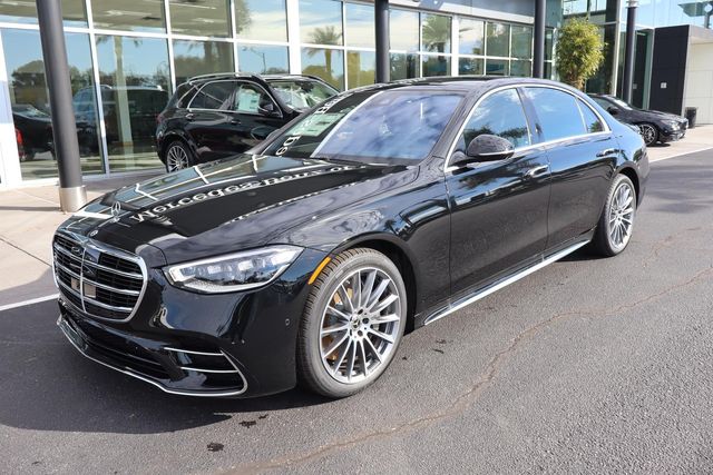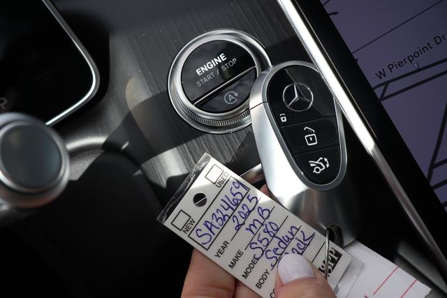 2025 Mercedes-Benz S-Class S 580 4MATIC(R) Black 4MATIC(R) 4MATIC(R) 9-Speed Automatic 4.0L V8 4.0L V8, 4MATIC(R), Black Leather, 15 Speakers, 4-Wheel Disc Brakes, ABS brakes, Adaptive suspension, Air Conditioning, Alloy wheels, AM/FM radio: SiriusXM, Apple CarPlay(R)/Android Auto(R), Auto High-beam Headlights, Auto tilt-away steering wheel, Auto-dimming door mirrors, Auto-dimming Rear-View mirror, Auto-leveling suspension, Automatic temperature control, Brake assist, Bumpers: body-color, Burmester(R) 3D Surround Sound System, Child-Seat-Sensing Airbag, Compass, Delay-off headlights, Driver door bin, Driver vanity mirror, Dual front impact airbags, Dual front side impact airbags, Electronic Stability Control, Emergency communication system: eCall Emergency System, Exterior Parking Camera Rear, Four wheel independent suspension, Front anti-roll bar, Front Bucket Seats, Front Center Armrest, Front dual zone A/C, Front reading lights, Garage door transmitter: HomeLink, Genuine wood dashboard insert, Genuine wood door panel insert, Head restraints memory, Heated door mirrors, Heated front seats, Heated steering wheel, HVAC memory, Illuminated entry, Knee airbag, Leather steering wheel, Low tire pressure warning, Memory seat, Nappa Leather Upholstery, Navigation System, Occupant sensing airbag, Outside temperature display, Overhead airbag, Overhead console, Panic alarm, Passenger door bin, Passenger vanity mirror, Power adjustable front head restraints, Power adjustable rear head restraints, Power door mirrors, Power driver seat, Power moonroof: Panorama, Power passenger seat, Power steering, Power windows, Powered Rapid-Heated & Ventilated Front Seats, Premium audio system: MBUX, Radio data system, Radio: MBUX w/Navigation, Rain sensing wipers, Rear anti-roll bar, Rear fog lights, Rear reading lights, Rear seat center armrest, Rear side impact airbag, Rear Window Blind, Rear window defroster, Remote keyless entry, Security system, Speed control, Speed-sensing steering, Speed-Sensitive Wipers, Steering wheel memory, Steering wheel mounted audio controls, Tachometer, Telescoping steering wheel, Tilt steering wheel, Traction control, Trip computer, Turn signal indicator mirrors, Variably intermittent wipers, Ventilated front seats, Wheels: 19" 5-Twin Spoke, 4.0L V8, 4MATIC(R), Black Leather.
