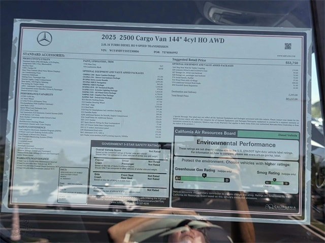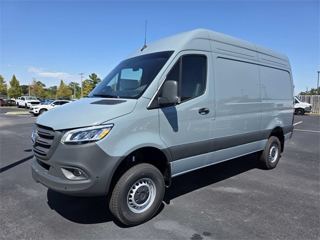 2025 Mercedes-Benz Sprinter 2500 Cargo 144 WB 4MATIC(R) Gray 4MATIC(R) 4MATIC(R) 9-Speed Automatic 2.0L I4 Diesel Turbocharged High Output 16" x 6.5J Steel Wheels, 3.923 Axle Ratio, 4-Wheel Disc Brakes, 5 Speakers, ABS brakes, Air Conditioning, All Wheel Drive Package, AM/FM radio, Armrest for Driver's Seat, Armrest for Front Passenger's Seat, Bodyside moldings, Brake assist, Co-Driver Thorax-Pelvis Sidebag, Driver door bin, Driver's Seat Mounted Armrest, Driver's Seat Occupancy Sensor, Dual front impact airbags, Dual front side impact airbags, Electronic Stability Control, Emergency communication system, Exterior Parking Camera Rear, Front anti-roll bar, Front Bucket Seats, Front Passenger Airbag, Front wheel independent suspension, Fully automatic headlights, Heated door mirrors, Heated Driver's Seat, Heated front seats, Illuminated entry, Low tire pressure warning, Maturin Fabric Upholstery, No Factory Installed Flooring, Outside temperature display, Overhead airbag, Overhead console, Passenger door bin, Passenger seat mounted armrest, Power door mirrors, Power steering, Power windows, Radio: Standard, Rain sensing wipers, Rear anti-roll bar, Remote keyless entry, Speed control, Speed-sensing steering, Standard Driver Seat, Standard Front Passenger Seat, Steering wheel mounted audio controls, Tachometer, Tilt steering wheel, Traction control, Variably intermittent wipers.