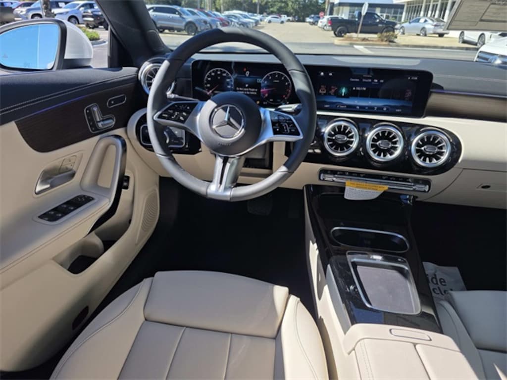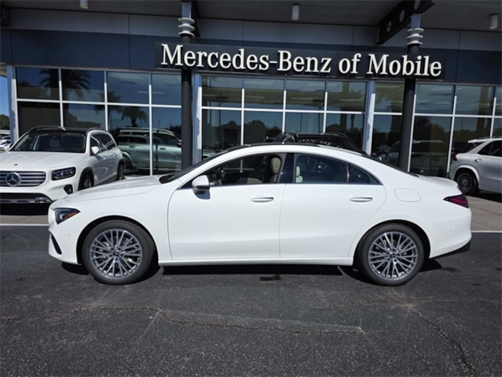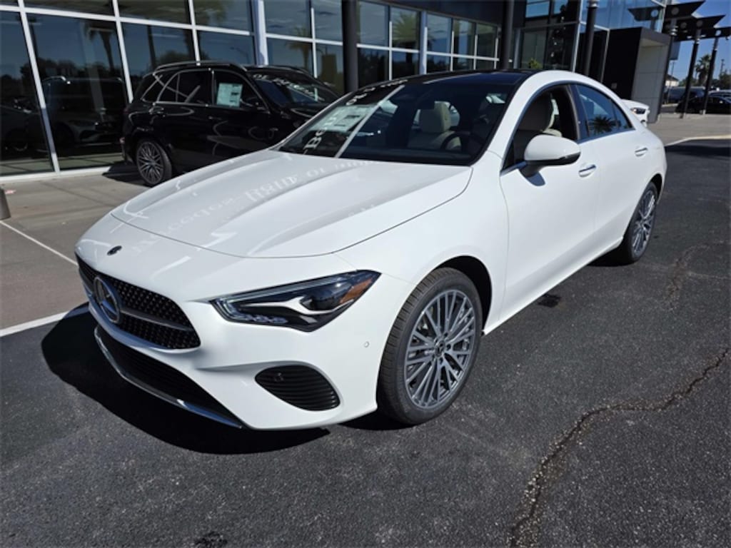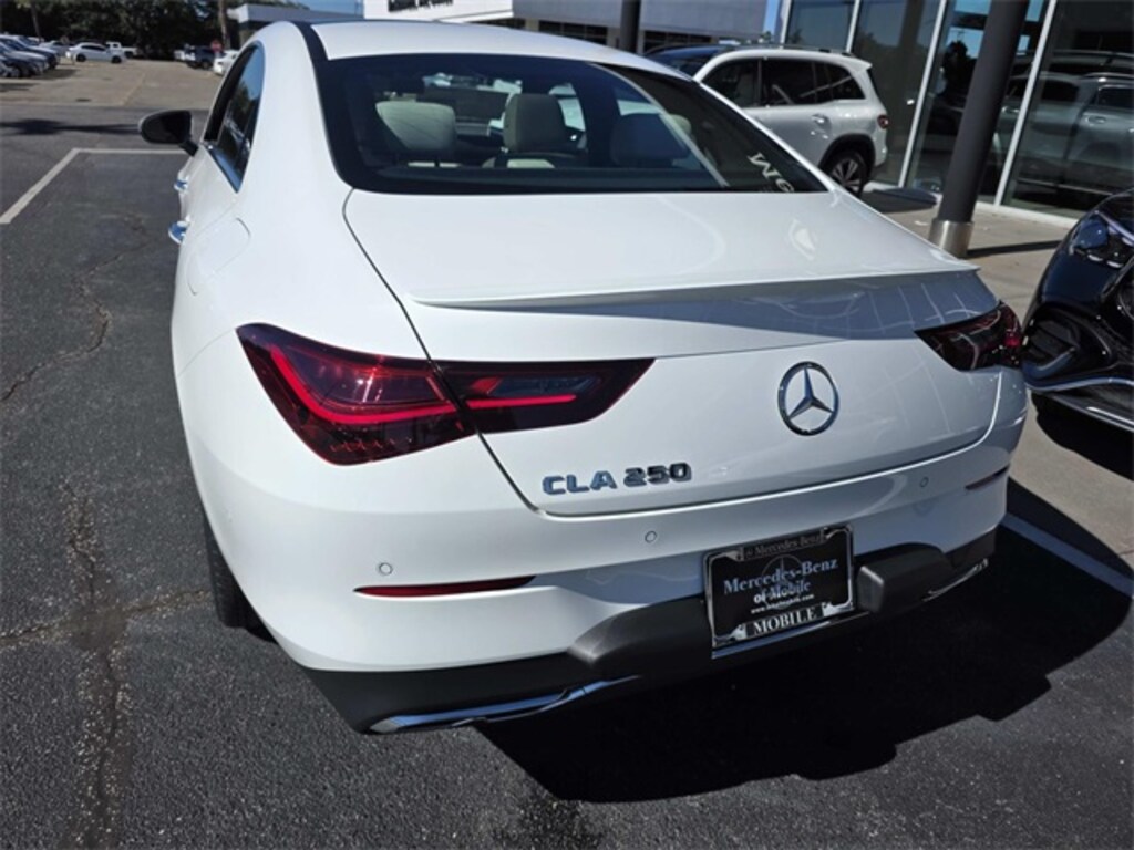 2026 Mercedes-Benz CLA 250 White FWD 8 Speed Dual Clutch 2.0L I4 Turbocharged 18" Multi-Spoke Alloy Wheels, 4-Wheel Disc Brakes, 8 Speakers, 8-Way Power-Adjustable Front Sport Seats, ABS brakes, Air Conditioning, Alloy wheels, AM/FM radio: SiriusXM, Apple CarPlay(R)/Android Auto(R), Auto High-beam Headlights, Auto-dimming Rear-View mirror, Automatic temperature control, Brake assist, Brushed Aluminum Interior Trim, Bumpers: body-color, Child-Seat-Sensing Airbag, Delay-off headlights, Driver door bin, Driver vanity mirror, Dual front impact airbags, Dual front side impact airbags, Electronic Stability Control, Emergency communication system: eCall Emergency System, Exterior Parking Camera Rear, Four wheel independent suspension, Front anti-roll bar, Front Bucket Seats, Front Center Armrest, Front dual zone A/C, Front reading lights, Fully automatic headlights, Heated door mirrors, Illuminated entry, Knee airbag, Leather steering wheel, Low tire pressure warning, MB-Tex Upholstery, Memory seat, Occupant sensing airbag, Outside temperature display, Overhead airbag, Overhead console, Panic alarm, Passenger door bin, Passenger vanity mirror, Power door mirrors, Power driver seat, Power moonroof, Power passenger seat, Power steering, Power windows, Radio data system, Radio: MBUX Multimedia System, Rain sensing wipers, Rear anti-roll bar, Rear fog lights, Rear reading lights, Rear seat center armrest, Rear window defroster, Remote keyless entry, Security system, SiriusXM Trial Subscription, Speed control, Speed-sensing steering, Split folding rear seat, Steering wheel mounted audio controls, Tachometer, Telescoping steering wheel, Tilt steering wheel, Traction control, Trip computer, Turn signal indicator mirrors, Variably intermittent wipers.