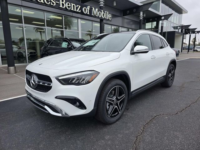 2026 Mercedes-Benz GLA 250 White FWD 8 Speed Dual Clutch 2.0L I4 Turbocharged 4-Wheel Disc Brakes, 6 Speakers, ABS brakes, Air Conditioning, Alloy wheels, AM/FM radio: SiriusXM, Apple CarPlay(R)/Android Auto(R), Auto High-beam Headlights, Auto-dimming door mirrors, Auto-dimming Rear-View mirror, Automatic temperature control, Brake assist, Bumpers: body-color, Child-Seat-Sensing Airbag, Delay-off headlights, Driver door bin, Driver vanity mirror, Dual front impact airbags, Dual front side impact airbags, Electronic Stability Control, Emergency communication system: eCall Emergency System and Active Emergency Stop Assist, Exterior Parking Camera Rear, Four wheel independent suspension, Front anti-roll bar, Front Bucket Seats, Front Center Armrest, Front dual zone A/C, Front fog lights, Front Power Comfort Seats, Front reading lights, Fully automatic headlights, Heated door mirrors, Illuminated entry, Knee airbag, Leather steering wheel, Low tire pressure warning, MB-Tex Upholstery, Memory seat, Occupant sensing airbag, Outside temperature display, Overhead airbag, Overhead console, Panic alarm, Passenger door bin, Passenger vanity mirror, Power door mirrors, Power driver seat, Power Liftgate, Power passenger seat, Power steering, Power windows, Premium audio system: MBUX, Radio data system, Radio: Mercedes-Benz User Experience (MBUX), Rain sensing wipers, Rear anti-roll bar, Rear fog lights, Rear reading lights, Rear window defroster, Rear window wiper, Remote keyless entry, Security system, SiriusXM Trial Subscription, Speed control, Speed-sensing steering, Split folding rear seat, Spoiler, Steering wheel mounted audio controls, Tachometer, Telescoping steering wheel, Tilt steering wheel, Traction control, Trip computer, Turn signal indicator mirrors, Variably intermittent wipers, Wheels: 18" Twin 5-Spoke.