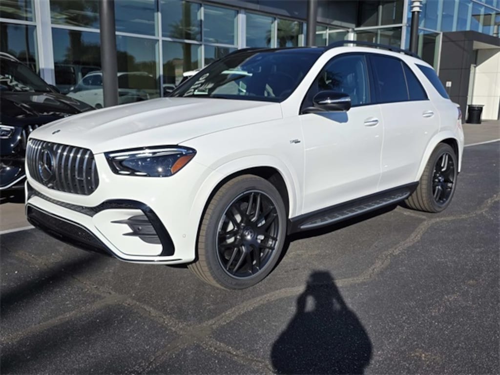 2026 Mercedes-Benz GLE 53 AMG(R) 4MATIC(R) White 4MATIC(R) 4MATIC(R) 9-Speed Automatic 3.0L I6 Turbo 13 Speakers, 20" AMG(R) Twin 5-Spoke Wheels, 4-Wheel Disc Brakes, ABS brakes, Adaptive suspension, Air Conditioning, Alloy wheels, AM/FM radio: SiriusXM, Anti-whiplash front head restraints, Apple CarPlay(R)/Android Auto(R), Auto High-beam Headlights, Auto tilt-away steering wheel, Auto-dimming door mirrors, Auto-dimming Rear-View mirror, Auto-leveling suspension, Automatic temperature control, Brake assist, Brushed Aluminum Trim, Bumpers: body-color, Burmester(R) Surround Sound System, Compass, Delay-off headlights, Driver door bin, Driver vanity mirror, Dual front impact airbags, Dual front side impact airbags, Electronic Stability Control, Emergency communication system: eCall Emergency System, Exterior Parking Camera Rear, Four wheel independent suspension, Front anti-roll bar, Front Bucket Seats, Front Center Armrest, Front dual zone A/C, Front reading lights, Fully automatic headlights, Garage door transmitter: HomeLink, Heated and Ventilated Power Front Seats with Driver Memory, Heated door mirrors, Heated front seats, High Performance Tires, Illuminated entry, Knee airbag, Leather steering wheel, Low tire pressure warning, MB-Tex Dashboard and Door Panels, Memory seat, Nappa Leather Upholstery, Navigation system: MBUX, Occupant sensing airbag, Outside temperature display, Overhead airbag, Panic alarm, Passenger door bin, Passenger vanity mirror, Power adjustable front head restraints, Power door mirrors, Power driver seat, Power Liftgate, Power moonroof, Power passenger seat, Power steering, Power windows, Pre-Installation For Online Music Streaming, Premium audio system: MBUX, Radio data system, Radio: 12.3" Media Display with Touchscreen, Rain sensing wipers, Rear anti-roll bar, Rear fog lights, Rear reading lights, Rear seat center armrest, Rear window defroster, Rear window wiper, Remote keyless entry, Security system, Sound Personalization, Speed control, Speed-sensing steering, Speed-Sensitive Wipers, Split folding rear seat, Spoiler, Sport steering wheel, Steering wheel memory, Steering wheel mounted audio controls, Tachometer, Telescoping steering wheel, Tilt steering wheel, Traction control, Trip computer, Turn signal indicator mirrors, Ventilated front seats, Weather band radio.