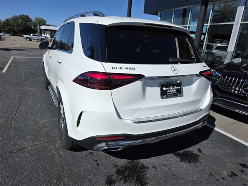 2026 Mercedes-Benz GLE 450 4MATIC(R) White 4MATIC(R) 4MATIC(R) 9-Speed Automatic 3.0L I6 Turbo 20" AMG(R) Twin 5-Spoke Wheels, 4-Wheel Disc Brakes, 8 Speakers, ABS brakes, Air Conditioning, Alloy wheels, AM/FM radio: SiriusXM, Anti-whiplash front head restraints, Apple CarPlay(R)/Android Auto(R), Auto High-beam Headlights, Auto tilt-away steering wheel, Auto-dimming door mirrors, Auto-dimming Rear-View mirror, Automatic temperature control, Brake assist, Bumpers: body-color, Compass, Delay-off headlights, Driver door bin, Driver vanity mirror, Dual front impact airbags, Dual front side impact airbags, Electronic Stability Control, Emergency communication system: eCall Emergency System, Exterior Parking Camera Rear, Four wheel independent suspension, Front anti-roll bar, Front Bucket Seats, Front Center Armrest, Front dual zone A/C, Front reading lights, Fully automatic headlights, Garage door transmitter: HomeLink, Heated door mirrors, Heated Front Seats, Heated front seats, HERMES Communications Module LTE, Illuminated entry, Knee airbag, Leather steering wheel, Low tire pressure warning, MB Navigation, MB-Tex Seat Trim, Memory seat, Navigation system: MBUX, Occupant sensing airbag, Outside temperature display, Overhead airbag, Panic alarm, Passenger door bin, Passenger vanity mirror, Power adjustable front head restraints, Power door mirrors, Power driver seat, Power Front Seats, Power Liftgate, Power moonroof, Power passenger seat, Power steering, Power windows, Premium audio system: MBUX, Radio data system, Radio: 12.3" Media Display with Touchscreen, Rain sensing wipers, Rear anti-roll bar, Rear fog lights, Rear reading lights, Rear seat center armrest, Rear window defroster, Rear window wiper, Remote keyless entry, Security system, SiriusXM Satellite Radio, Speed control, Speed-sensing steering, Speed-Sensitive Wipers, Split folding rear seat, Spoiler, Steering wheel memory, Steering wheel mounted audio controls, Tachometer, Telescoping steering wheel, Tilt steering wheel, Traction control, Trip computer, Turn signal indicator mirrors, Weather band radio, Wireless Charging, Wireless Smartphone Integration.