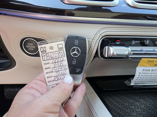 2026 Mercedes-Benz GLE 450 4MATIC(R) Black 4MATIC(R) 4MATIC(R) 9-Speed Automatic 3.0L I6 Turbo 20" AMG(R) Twin 5-Spoke Wheels, 4-Wheel Disc Brakes, 8 Speakers, ABS brakes, Air Conditioning, Alloy wheels, AM/FM radio: SiriusXM, Anti-whiplash front head restraints, Apple CarPlay(R)/Android Auto(R), Auto High-beam Headlights, Auto tilt-away steering wheel, Auto-dimming door mirrors, Auto-dimming Rear-View mirror, Automatic temperature control, Brake assist, Bumpers: body-color, Compass, Delay-off headlights, Driver door bin, Driver vanity mirror, Dual front impact airbags, Dual front side impact airbags, Electronic Stability Control, Emergency communication system: eCall Emergency System, Exterior Parking Camera Rear, Four wheel independent suspension, Front anti-roll bar, Front Bucket Seats, Front Center Armrest, Front dual zone A/C, Front reading lights, Fully automatic headlights, Garage door transmitter: HomeLink, Heated door mirrors, Heated Front Seats, Heated front seats, HERMES Communications Module LTE, Illuminated entry, Knee airbag, Leather steering wheel, Low tire pressure warning, MB Navigation, MB-Tex Seat Trim, Memory seat, Navigation system: MBUX, Occupant sensing airbag, Outside temperature display, Overhead airbag, Panic alarm, Passenger door bin, Passenger vanity mirror, Power adjustable front head restraints, Power door mirrors, Power driver seat, Power Front Seats, Power Liftgate, Power moonroof: Panorama, Power passenger seat, Power steering, Power windows, Premium audio system: MBUX, Radio data system, Radio: 12.3" Media Display with Touchscreen, Rain sensing wipers, Rear anti-roll bar, Rear fog lights, Rear reading lights, Rear seat center armrest, Rear window defroster, Rear window wiper, Remote keyless entry, Security system, SiriusXM Satellite Radio, Speed control, Speed-sensing steering, Speed-Sensitive Wipers, Split folding rear seat, Spoiler, Steering wheel memory, Steering wheel mounted audio controls, Tachometer, Telescoping steering wheel, Tilt steering wheel, Traction control, Trip computer, Turn signal indicator mirrors, Weather band radio, Wireless Charging, Wireless Smartphone Integration.
