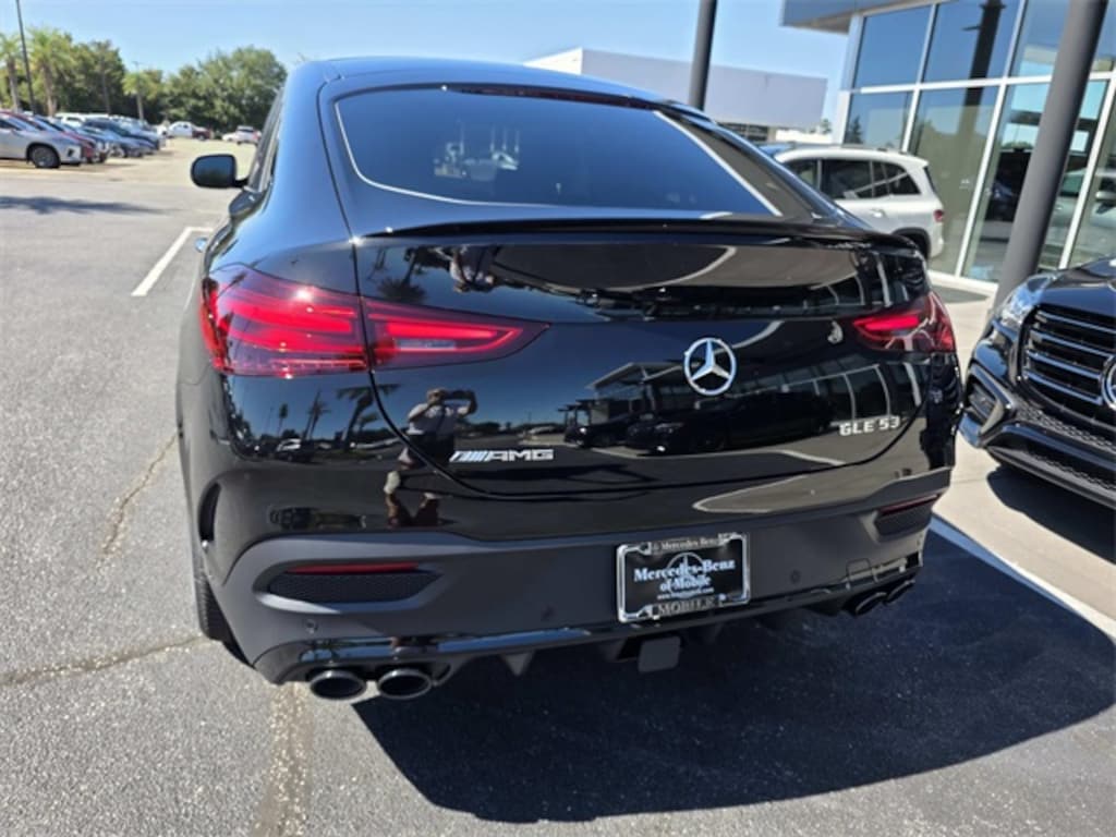 2026 Mercedes-Benz GLE 53 AMG(R) 4MATIC(R) Black 4MATIC(R) 4MATIC(R) 9-Speed Automatic 3.0L I6 Turbo 13 Speakers, 21" AMG(R) Twin 5-Spoke Wheels, 4-Wheel Disc Brakes, ABS brakes, Adaptive suspension, Air Conditioning, Alloy wheels, AM/FM radio: SiriusXM, Anti-whiplash front head restraints, Apple CarPlay(R)/Android Auto(R), Auto High-beam Headlights, Auto tilt-away steering wheel, Auto-dimming door mirrors, Auto-dimming Rear-View mirror, Auto-leveling suspension, Automatic temperature control, Brake assist, Brushed Aluminum Trim, Bumpers: body-color, Child-Seat-Sensing Airbag, Compass, Delay-off headlights, Driver door bin, Driver vanity mirror, Dual front impact airbags, Dual front side impact airbags, Electronic Stability Control, Emergency communication system: eCall Emergency System, Exterior Parking Camera Rear, Four wheel independent suspension, Front anti-roll bar, Front Bucket Seats, Front Center Armrest, Front dual zone A/C, Front reading lights, Fully automatic headlights, Garage door transmitter: HomeLink, Heated door mirrors, Heated front seats, Htd & Vent Power Front Seats w/Driver Memory, Illuminated entry, Knee airbag, Leather steering wheel, Low tire pressure warning, Memory seat, Nappa Leather Dashboard & Door Panels, Nappa Leather Seat Trim, Navigation system: MBUX, Occupant sensing airbag, Outside temperature display, Overhead airbag, Panic alarm, Passenger door bin, Passenger vanity mirror, Power adjustable front head restraints, Power door mirrors, Power driver seat, Power Liftgate, Power moonroof: Panorama, Power passenger seat, Power steering, Power windows, Premium audio system: MBUX, Radio data system, Radio: 12.3" Media Display w/Touchscreen, Rain sensing wipers, Rapid Heating Front Seats, Rear anti-roll bar, Rear fog lights, Rear reading lights, Rear seat center armrest, Rear window defroster, Remote keyless entry, Security system, Speed control, Speed-sensing steering, Speed-Sensitive Wipers, Split folding rear seat, Spoiler, Sport steering wheel, Steering wheel memory, Steering wheel mounted audio controls, Tachometer, Telescoping steering wheel, Tilt steering wheel, Traction control, Trip computer, Turn signal indicator mirrors, Ventilated front seats, Weather band radio.