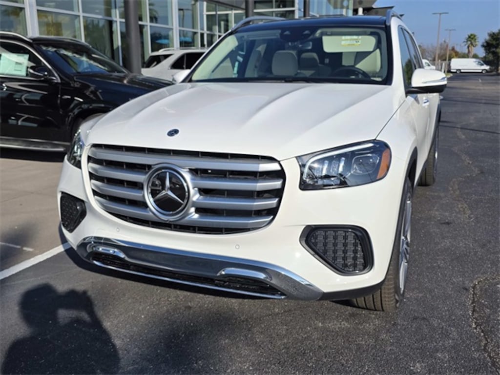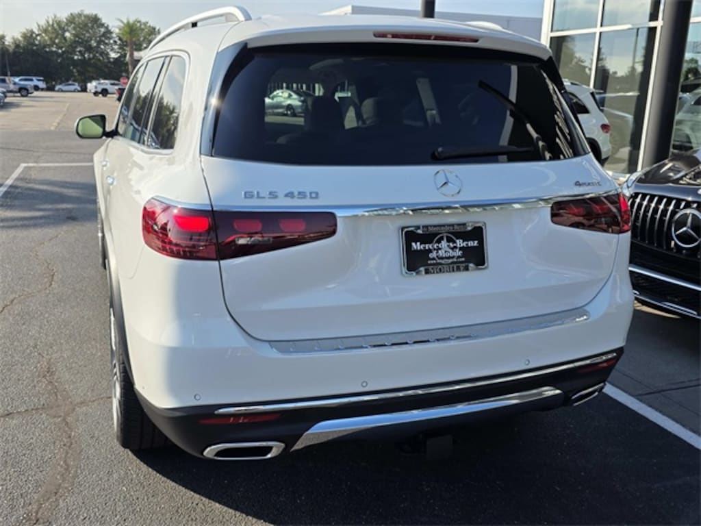 2026 Mercedes-Benz GLS 450 4MATIC(R) White 4MATIC(R) 4MATIC(R) 9-Speed Automatic 3.0L I6 13 Speakers, 3rd row seats: split-bench, 4-Wheel Disc Brakes, 7-Seat Configuration, ABS brakes, Adaptive suspension, Air Conditioning, Alloy wheels, AM/FM radio: SiriusXM, Apple CarPlay(R)/Android Auto(R), Auto High-beam Headlights, Auto tilt-away steering wheel, Auto-dimming door mirrors, Auto-dimming Rear-View mirror, Auto-leveling suspension, Automatic temperature control, Brake assist, Bumpers: body-color, Child-Seat-Sensing Airbag, Compass, Delay-off headlights, Driver door bin, Driver vanity mirror, Dual front impact airbags, Dual front side impact airbags, Electronic Stability Control, Emergency communication system: eCall Emergency System, Exterior Parking Camera Rear, Four wheel independent suspension, Front anti-roll bar, Front Bucket Seats, Front Center Armrest w/Storage, Front dual zone A/C, Front reading lights, Fully automatic headlights, Garage door transmitter: HomeLink, Head restraints memory, Heated and Ventilated Power Front Seats with Memory, Heated door mirrors, Heated front seats, Illuminated entry, Knee airbag, Leather steering wheel, Low tire pressure warning, MB-Tex Upholstery, Memory seat, Navigation system: MB Navigation, Occupant sensing airbag, Outside temperature display, Overhead airbag, Overhead console, Panic alarm, Passenger door bin, Passenger vanity mirror, Power adjustable front head restraints, Power door mirrors, Power driver seat, Power Liftgate, Power moonroof: Panorama, Power passenger seat, Power steering, Power windows, Premium audio system: MBUX, Radio: Burmester(R) Surround Sound System, Rain sensing wipers, Rear air conditioning, Rear anti-roll bar, Rear dual zone A/C, Rear fog lights, Rear reading lights, Rear seat center armrest, Rear window defroster, Rear window wiper, Reclining 3rd row seat, Remote keyless entry, Security system, Speed control, Speed-sensing steering, Speed-Sensitive Wipers, Split folding rear seat, Spoiler, Steering wheel memory, Steering wheel mounted audio controls, Tachometer, Telescoping steering wheel, Tilt steering wheel, Traction control, Trip computer, Turn signal indicator mirrors, Variably intermittent wipers, Ventilated front seats, Weather band radio, Wheels: 21" Triple 5-Spoke.
