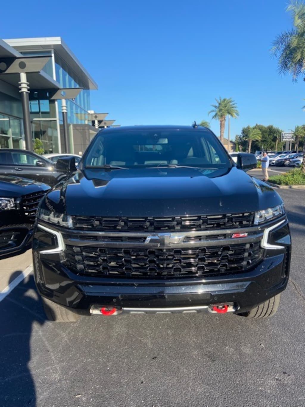 2021 Chevrolet Suburban Z71 Z71 Black 10-Way Power Driver & Passenger Seat Adjusters, 1st & 2nd Row Color-Keyed Carpeted Floor Mats, 2 USB Data Ports, 2-Speed Active Electronic AutoTrac Transfer Case, 2nd Row Pwr Release 60/40 Split-Folding Bench Seat, 3rd Row 60/40 Power-Folding Split-Bench, Auto-Dimming Inside Rear-View Mirror, Automatic Heated Steering Wheel, Black Tubular Assist Steps, Bose 9-Speaker Stereo Audio System Feature, Bright Front & Rear Door Sill Plates, Color-Keyed Carpeting Floor Covering, Driver & Front Outboard Passenger Airbags, Driver Alert Package, Dual-Pane Power Panoramic Sunroof, Floor Console w/Storage Area, Front & Rear Park Assist, Front High-Approach Angle Fascia, Hands-Free Rear Power Programmable Liftgate, HD Radio, HD Surround Vision, Heated 2nd Row Outboard Seats, Heated Driver & Front Passenger Seats, Hill Descent Control, Infotainment Display, Lane Change Alert w/Side Blind Zone Alert, Lane Keep Assist w/Lane Departure Warning, Leather-Wrapped Steering Wheel, LED Daytime Running Lamps, License Plate Front Mounting Package, Luxury Package, Memory Settings, Memory Settings For Driver, Outside Heated Power-Adjustable Mirrors, Power Liftgate, Power Tilt & Telescopic Steering Column, Preferred Equipment Group 2Z7, Radio: Chevrolet Infotainment 3 Premium System, Rear Cross Traffic Alert, Rear Media & Nav Package, Rear Pedestrian Alert, Rear Seat Media System, Red Recovery Hooks, Remote Start, SiriusXM Radio w/360L, Universal Home Remote, Wheels: 20" x 9" Machined Aluminum.