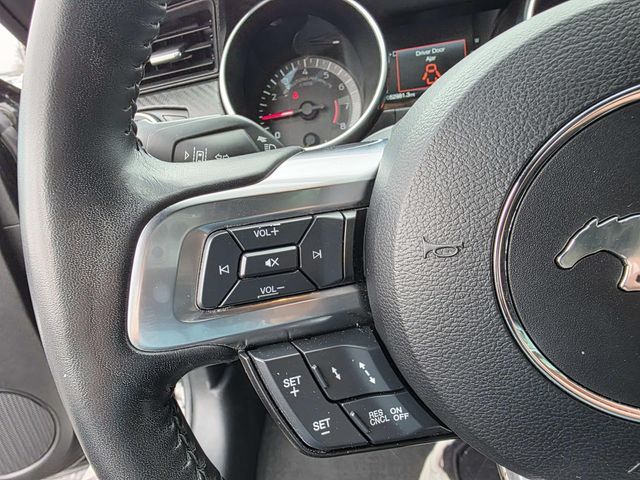 Adaptive Cruise Control, AM/FM Stereo, AM/FM Stereo w/MP3 Player, Black Blade Decklid Spoiler, Black Front & Rear Pony Badges, Black Grille, Black Mirror Caps, Cloth Bucket Seats, Dual-Zone Automatic Temperature Control, Equipment Group 101A, Ford Safe & Smart Package, Mustang Nite Pony Package, Mustang Nite Pony Package w/Shadow Black Paint, Painted Black Roof, Rear Parking Sensors, Selectable Drive Modes w/Toggle Switches, SiriusXM Radio, SYNC 3 Communications & Entertainment System, SYNC Communications & Entertainment System, Voice-Activated Touch-Screen Navigation System, Wheels: 19" x 8.5" Ebony Black-Painted Aluminum, 4-Wheel Disc Brakes, 4G LTE Wi-Fi Hotspot Removal, ABS brakes, Air Conditioning, Auto High-beam Headlights, Auto-dimming Rear-View mirror, Brake assist, Bumpers: body-color, Compass, Delay-off headlights, Driver door bin, Driver vanity mirror, Dual front impact airbags, Dual front side impact airbags, Electronic Stability Control, Emergency communication system: 911 Assist, Exterior Parking Camera Rear, Four wheel independent suspension, Front anti-roll bar, Front Bucket Seats, Front Center Armrest, Front reading lights, Fully automatic headlights, Illuminated entry, Knee airbag, Leather Shift Knob, Low tire pressure warning, Occupant sensing airbag, Outside temperature display, Overhead airbag, Overhead console, Panic alarm, Passenger door bin, Passenger vanity mirror, Power door mirrors, Power steering, Power windows, Radio data system, Rain sensing wipers, Rear anti-roll bar, Rear window defroster, Remote keyless entry, Security system, Speed control, Speed-sensing steering, Speed-Sensitive Wipers, Split folding rear seat, Steering wheel mounted audio controls, Tachometer, Telescoping steering wheel, Tilt steering wheel, Traction control, Trip computer, Variably intermittent wipers, Voltmeter, Adaptive Cruise Control, AM/FM Stereo, AM/FM Stereo w/MP3 Player, Black Blade Decklid Spoiler, Black Front & Rear Pony Badges, Black Grille, Black Mirror Caps, Cloth Bucket Seats, Dual-Zone Automatic Temperature Control, Equipment Group 101A, Ford Safe & Smart Package, Mustang Nite Pony Package, Mustang Nite Pony Package w/Shadow Black Paint, Painted Black Roof, Rear Parking Sensors, Selectable Drive Modes w/Toggle Switches, SiriusXM Radio, SYNC 3 Communications & Entertainment System, SYNC Communications & Entertainment System, Voice-Activated Touch-Screen Navigation System, Wheels: 19" x 8.5" Ebony Black-Painted Aluminum.