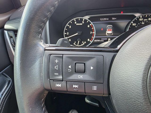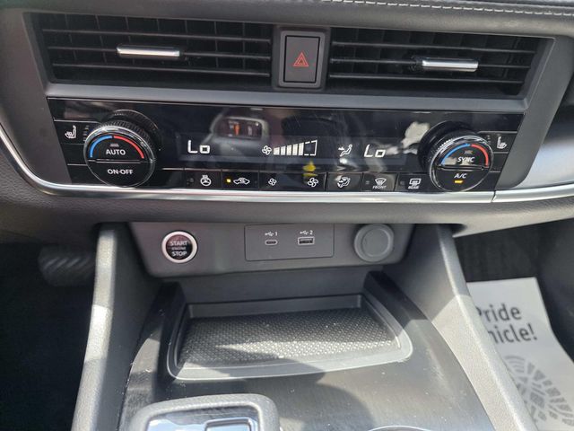 18" Aluminum Alloy Wheels, Heated Driver & Front Passenger Seats, Heated Leather Wrapped Steering Wheel, Illuminated entry, Leatherette Door Trim Inserts w/Stitch, Panoramic Moonroof, Power Liftgate, PRIMATEX Leatherette Seat Trim, Rear Door Sunshades, Rear Parking Sensors, Rear Personal Lights, Security Alarm, Silver Painted Roof Rails, SV Premium B Package, 4-Wheel Disc Brakes, 5.604 Axle Ratio, 6 Speakers, ABS brakes, Air Conditioning, AM/FM Radio, AM/FM radio: SiriusXM, Auto High-beam Headlights, Automatic temperature control, Black Splash Guards (Set of 4), Brake assist, Bumpers: body-color, Chrome Rear Bumper Protector, Cloth Seat Trim, Delay-off headlights, Driver door bin, Driver vanity mirror, Dual front impact airbags, Dual front side impact airbags, Electronic Stability Control, Emergency communication system: NissanConnect Services, Four wheel independent suspension, Front anti-roll bar, Front Bucket Seats, Front Center Armrest, Front dual zone A/C, Front reading lights, Fully automatic headlights, Heated door mirrors, Knee airbag, Low tire pressure warning, NissanConnect featuring Apple CarPlay and Android Auto, Occupant sensing airbag, Outside temperature display, Overhead airbag, Overhead console, Panic alarm, Passenger door bin, Passenger vanity mirror, Power door mirrors, Power driver seat, Power steering, Power windows, Radio data system, Rear anti-roll bar, Rear seat center armrest, Rear side impact airbag, Rear window defroster, Rear window wiper, Remote keyless entry, Speed control, Speed-Sensitive Wipers, Split folding rear seat, Spoiler, Steering wheel mounted audio controls, Tachometer, Telescoping steering wheel, Tilt steering wheel, Traction control, Trip computer, Variably intermittent wipers, 18" Aluminum Alloy Wheels, Heated Driver & Front Passenger Seats, Heated Leather Wrapped Steering Wheel, Illuminated entry, Leatherette Door Trim Inserts w/Stitch, Panoramic Moonroof, Power Liftgate, PRIMATEX Leatherette Seat Trim, Rear Door Sunshades, Rear Parking Sensors, Rear Personal Lights, Security Alarm, Silver Painted Roof Rails, SV Premium B Package.